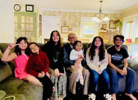 Aquí con todos mis nietos en la casa de mi hijo Sam y Samantha su esposa. Derecha - izquierda : Isaac Jerónimo 18, River Grace 13 , Eliana Rose 3